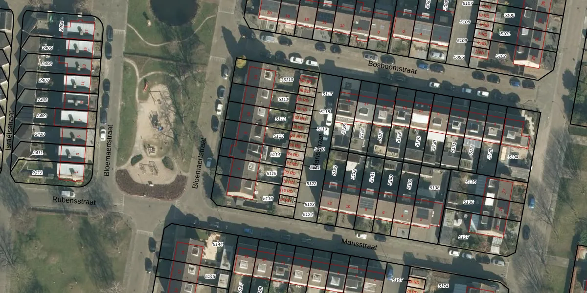 Het perceel waarop Marisstraat 26-RD staat heeft een oppervlakte van 19 m². Dit is een klein perceel. De perceeloppervlakte wordt geregistreerd door het Kadaster. Gedetailleerde informatie over de maten van dit perceel kunt u vinden in het rapport Kadastrale kaart met maatvoering van Marisstraat 26-RD.