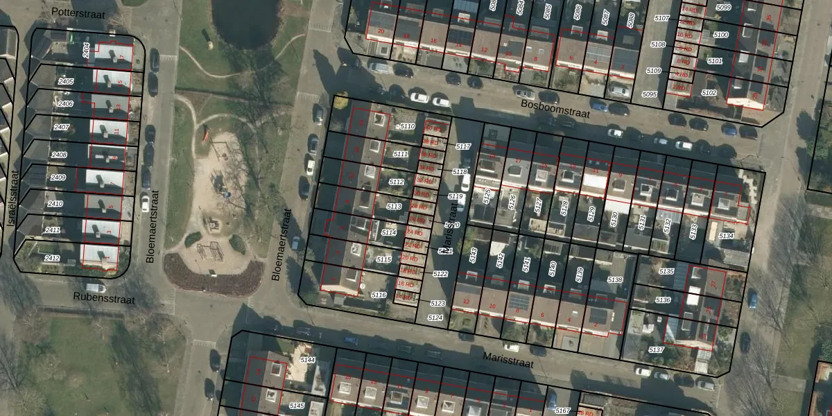 Het perceel waarop Marisstraat 28-RD staat heeft een oppervlakte van 163 m². Dit is een middelgroot perceel. De perceeloppervlakte wordt geregistreerd door het Kadaster. Gedetailleerde informatie over de maten van dit perceel kunt u vinden in het rapport Kadastrale kaart met maatvoering van Marisstraat 28-RD.