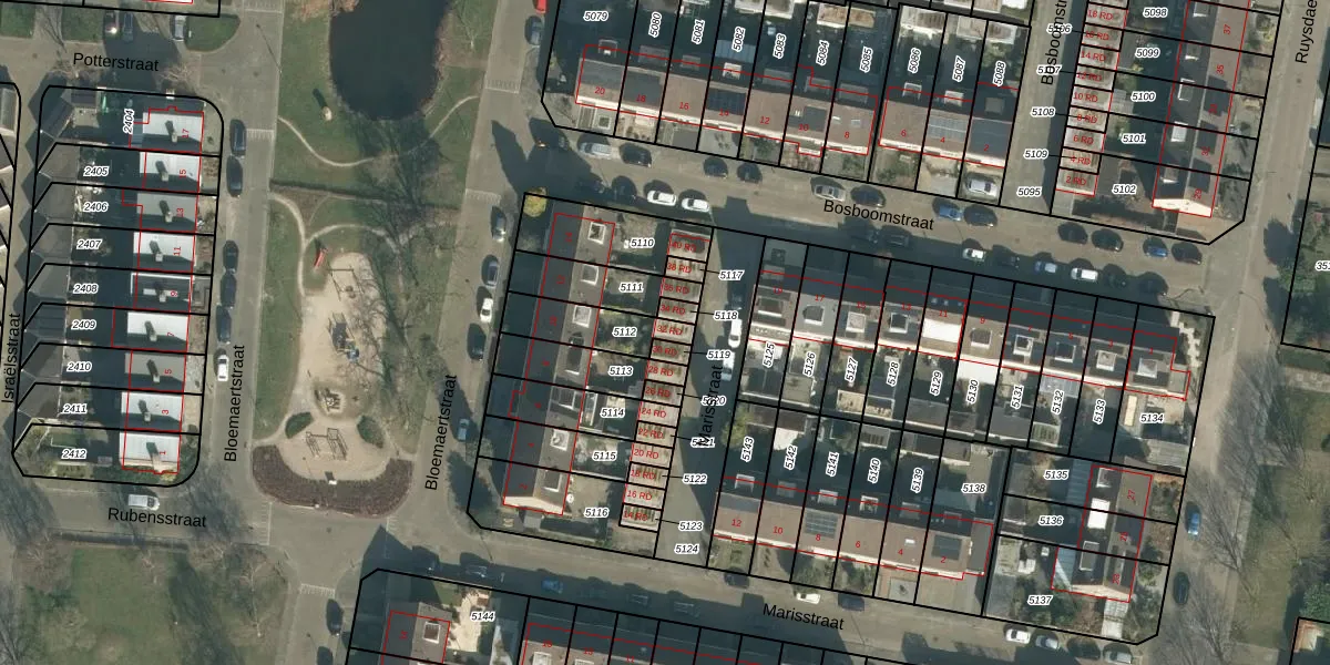 Marisstraat 32-RD is gelegen op kadastraal perceel DGN01A5112. Deze kadastrale aanduiding is uniek en wordt gebruikt door het Kadaster om eigendomsrechten en andere zakelijke rechten vast te leggen. Het perceel maakt onderdeel uit van de kadastrale gemeente Dongen.