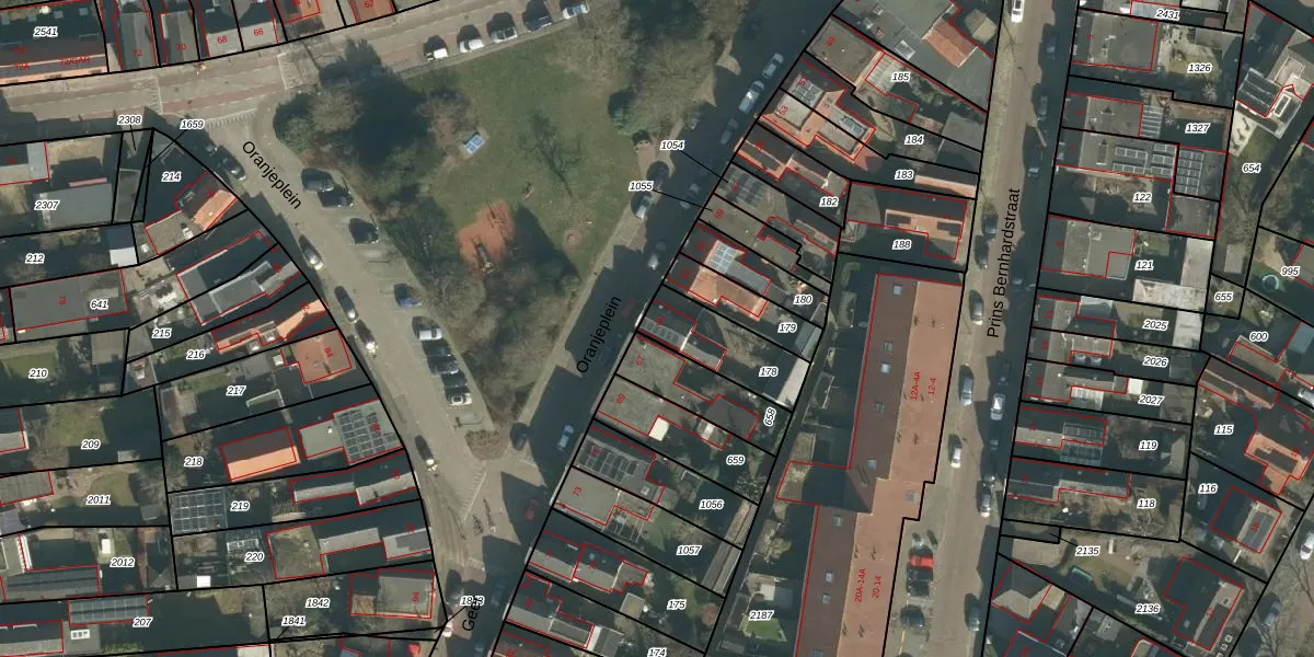Het perceel waarop Oranjeplein 65 staat heeft een oppervlakte van 215 m². Dit is een middelgroot perceel. De perceeloppervlakte wordt geregistreerd door het Kadaster. Gedetailleerde informatie over de maten van dit perceel kunt u vinden in het rapport Kadastrale kaart met maatvoering van Oranjeplein 65.