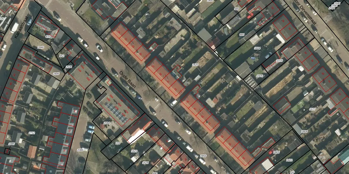 Oude Baan 43 is gelegen op kadastraal perceel DGN01H2420. Deze kadastrale aanduiding is uniek en wordt gebruikt door het Kadaster om eigendomsrechten en andere zakelijke rechten vast te leggen. Het perceel maakt onderdeel uit van de kadastrale gemeente Dongen.