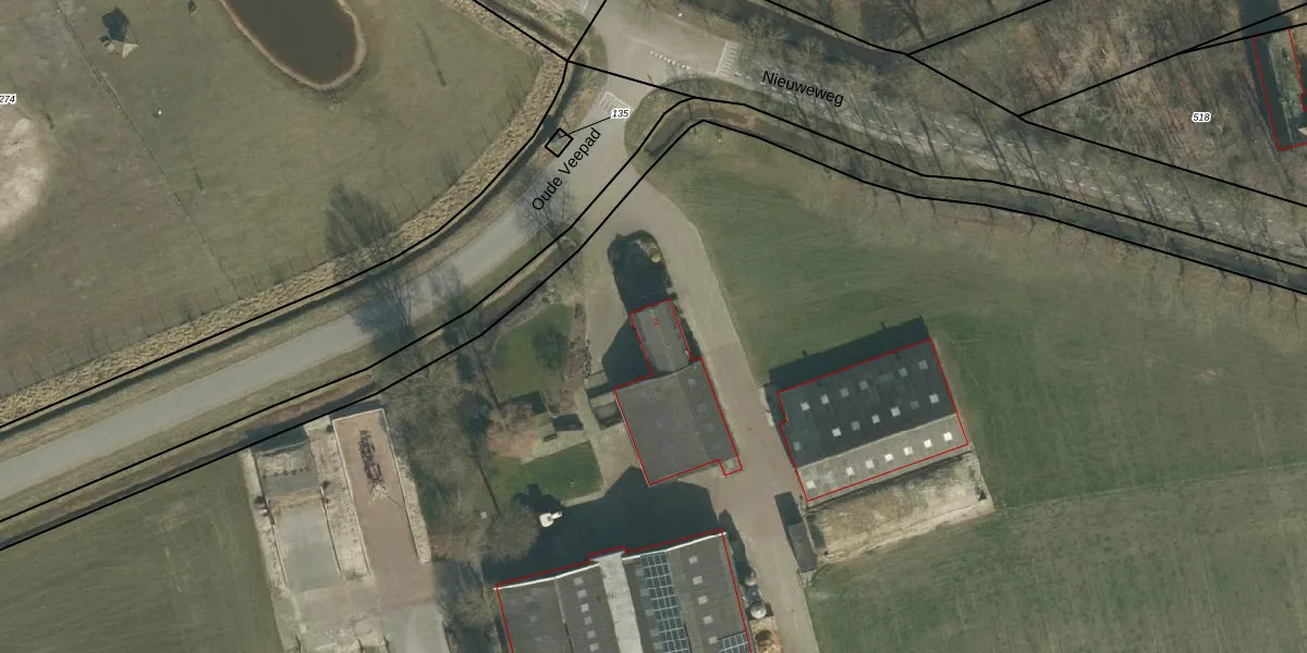 Het perceel waarop Oude Veepad 2 staat heeft een oppervlakte van 13,9 ha. Dit is een zeer groot perceel. De perceeloppervlakte wordt geregistreerd door het Kadaster. Gedetailleerde informatie over de maten van dit perceel kunt u vinden in het rapport Kadastrale kaart met maatvoering van Oude Veepad 2.