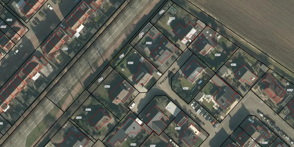 Perzikgaarde 9 is gelegen op kadastraal perceel DGN01B3523. Deze kadastrale aanduiding is uniek en wordt gebruikt door het Kadaster om eigendomsrechten en andere zakelijke rechten vast te leggen. Het perceel maakt onderdeel uit van de kadastrale gemeente Dongen.