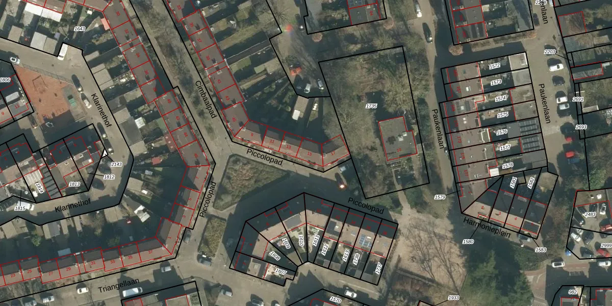 Het perceel waarop Piccolopad 15 staat heeft een oppervlakte van 2950 m². Dit is een zeer groot perceel. De perceeloppervlakte wordt geregistreerd door het Kadaster. Gedetailleerde informatie over de maten van dit perceel kunt u vinden in het rapport Kadastrale kaart met maatvoering van Piccolopad 15.