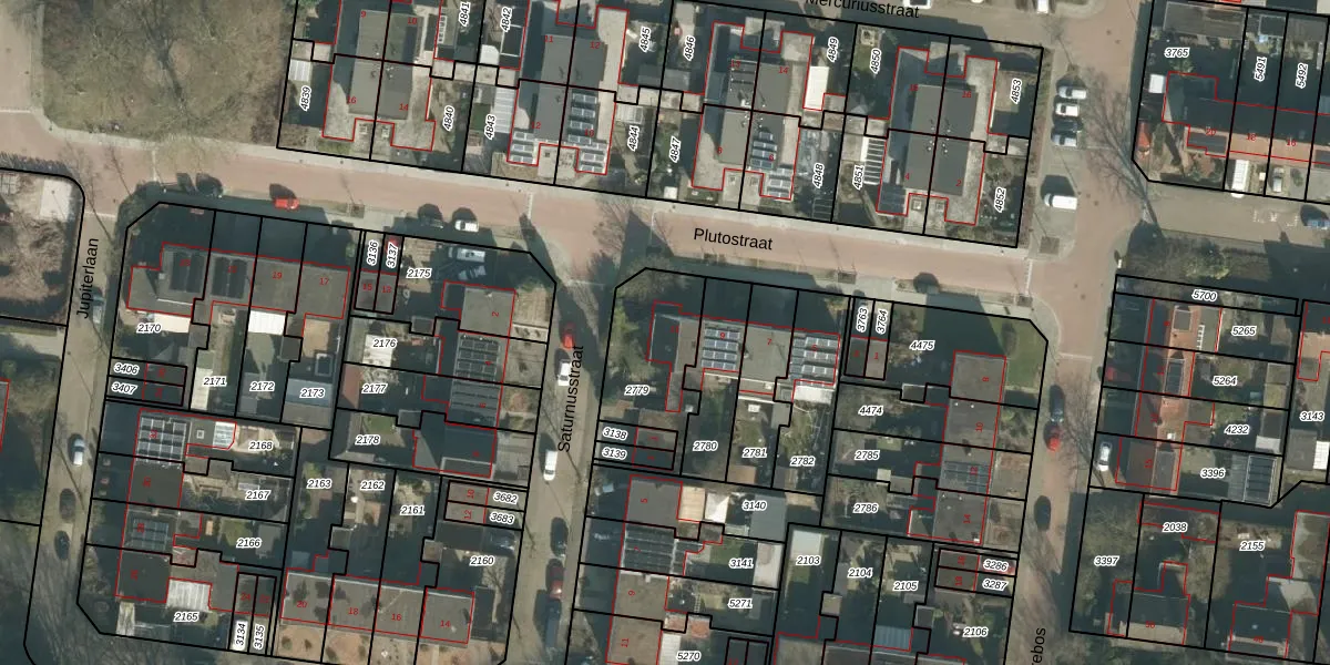 Het perceel waarop Plutostraat 11 staat heeft een oppervlakte van 323 m². Dit is een groot perceel. De perceeloppervlakte wordt geregistreerd door het Kadaster. Gedetailleerde informatie over de maten van dit perceel kunt u vinden in het rapport Kadastrale kaart met maatvoering van Plutostraat 11.