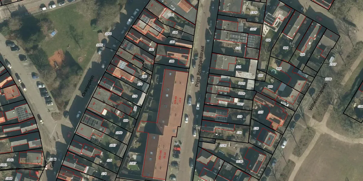 Het perceel waarop Prins Bernhardstraat 6 staat heeft een oppervlakte van 1496 m². Dit is een zeer groot perceel. De perceeloppervlakte wordt geregistreerd door het Kadaster. Gedetailleerde informatie over de maten van dit perceel kunt u vinden in het rapport Kadastrale kaart met maatvoering van Prins Bernhardstraat 6.