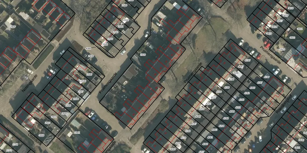 Het perceel waarop Pruimengaarde 36 staat heeft een oppervlakte van 2224 m². Dit is een zeer groot perceel. De perceeloppervlakte wordt geregistreerd door het Kadaster. Gedetailleerde informatie over de maten van dit perceel kunt u vinden in het rapport Kadastrale kaart met maatvoering van Pruimengaarde 36.