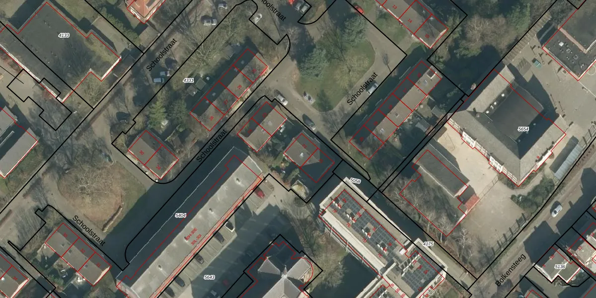Schoolstraat 22 is gelegen op kadastraal perceel DGN01B5404. Deze kadastrale aanduiding is uniek en wordt gebruikt door het Kadaster om eigendomsrechten en andere zakelijke rechten vast te leggen. Het perceel maakt onderdeel uit van de kadastrale gemeente Dongen.