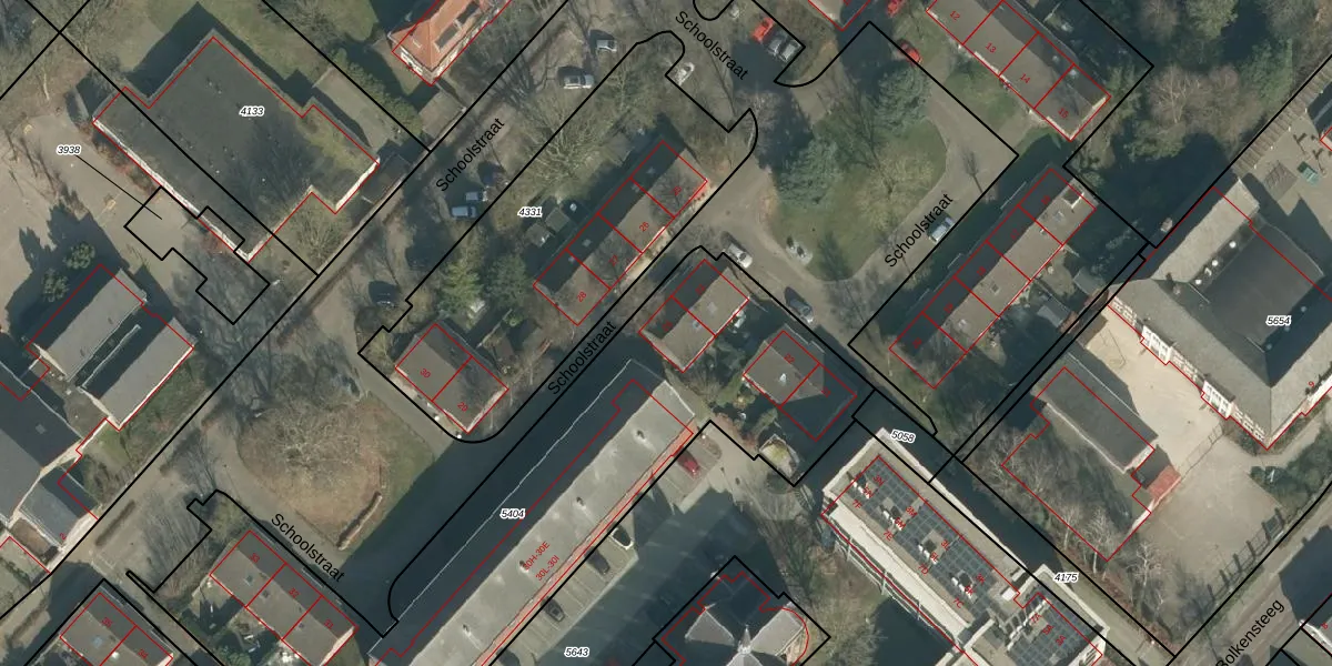 Schoolstraat 24 is gelegen op kadastraal perceel DGN01B5404. Deze kadastrale aanduiding is uniek en wordt gebruikt door het Kadaster om eigendomsrechten en andere zakelijke rechten vast te leggen. Het perceel maakt onderdeel uit van de kadastrale gemeente Dongen.