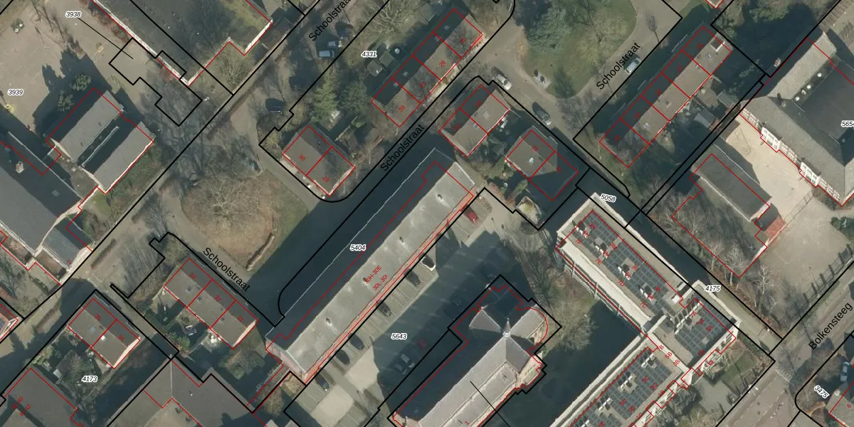 Schoolstraat 30-E is gelegen op kadastraal perceel DGN01B5404. Deze kadastrale aanduiding is uniek en wordt gebruikt door het Kadaster om eigendomsrechten en andere zakelijke rechten vast te leggen. Het perceel maakt onderdeel uit van de kadastrale gemeente Dongen.