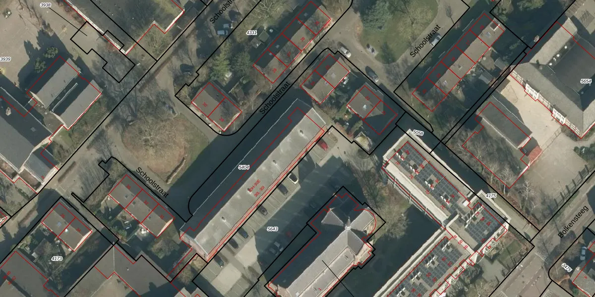 Schoolstraat 30-I is gelegen op kadastraal perceel DGN01B5404. Deze kadastrale aanduiding is uniek en wordt gebruikt door het Kadaster om eigendomsrechten en andere zakelijke rechten vast te leggen. Het perceel maakt onderdeel uit van de kadastrale gemeente Dongen.
