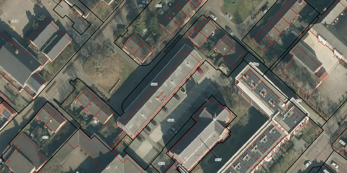 Het perceel waarop Schoolstraat 30-J staat heeft een oppervlakte van 2530 m². Dit is een zeer groot perceel. De perceeloppervlakte wordt geregistreerd door het Kadaster. Gedetailleerde informatie over de maten van dit perceel kunt u vinden in het rapport Kadastrale kaart met maatvoering van Schoolstraat 30-J.