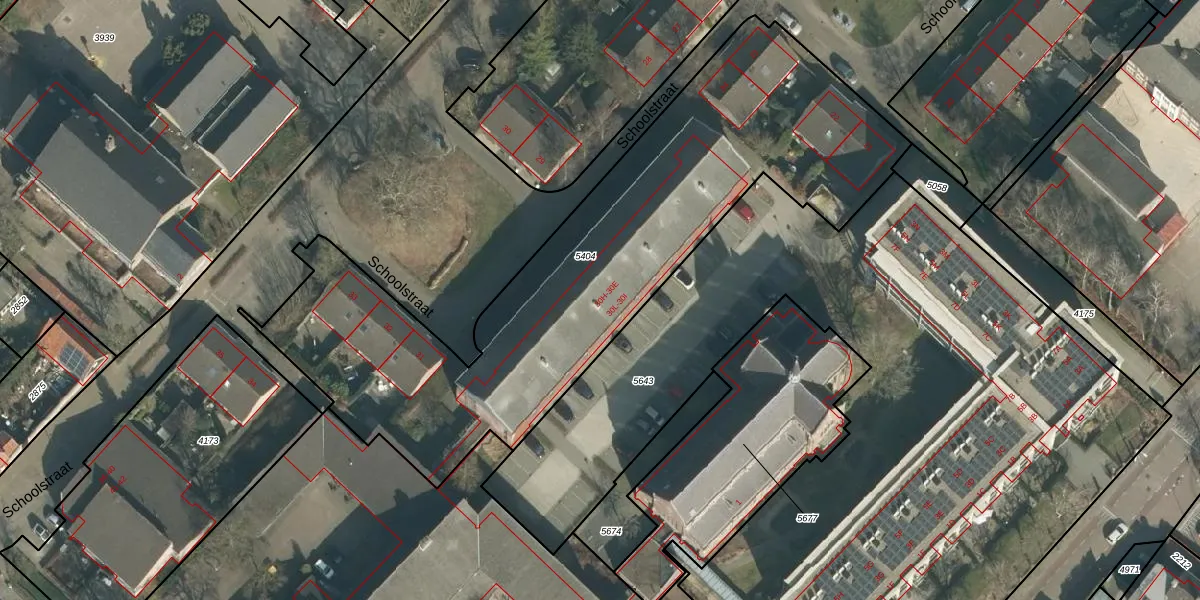Het perceel waarop Schoolstraat 30-G staat heeft een oppervlakte van 2530 m². Dit is een zeer groot perceel. De perceeloppervlakte wordt geregistreerd door het Kadaster. Gedetailleerde informatie over de maten van dit perceel kunt u vinden in het rapport Kadastrale kaart met maatvoering van Schoolstraat 30-G.