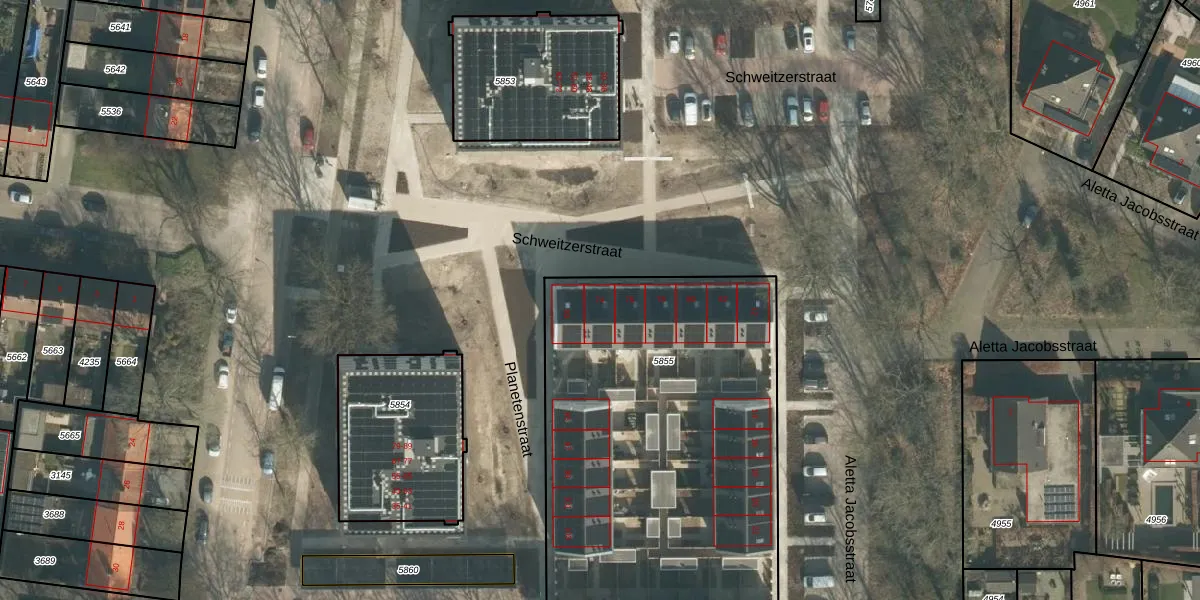 Het perceel waarop Schweitzerstraat 74 staat heeft een oppervlakte van 2520 m². Dit is een zeer groot perceel. De perceeloppervlakte wordt geregistreerd door het Kadaster. Gedetailleerde informatie over de maten van dit perceel kunt u vinden in het rapport Kadastrale kaart met maatvoering van Schweitzerstraat 74.