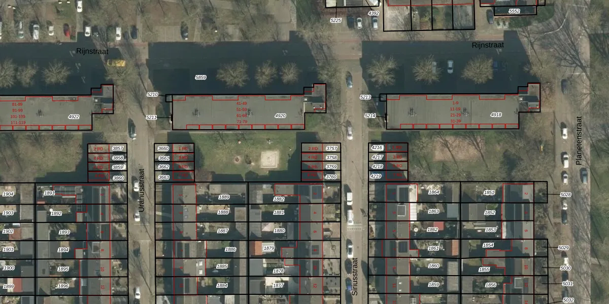 Gebruik de zoekbalk of klik op een perceel voor informatie over de adressen binnen dit perceel.