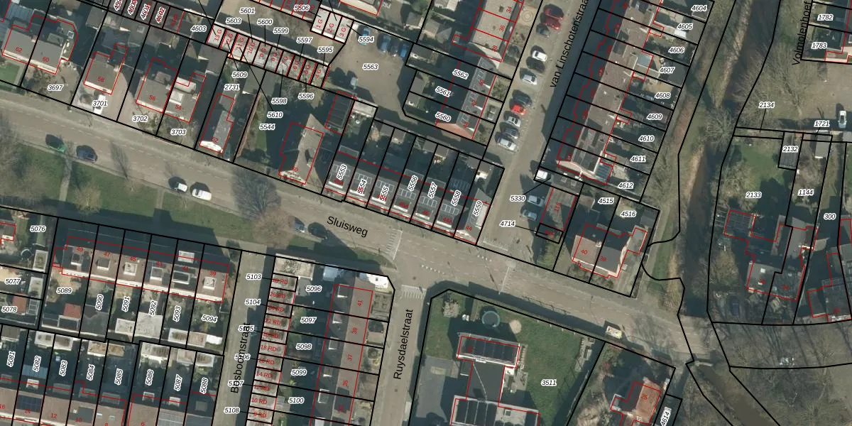Het perceel waarop Sluisweg 46 staat heeft een oppervlakte van 105 m². Dit is een middelgroot perceel. De perceeloppervlakte wordt geregistreerd door het Kadaster. Gedetailleerde informatie over de maten van dit perceel kunt u vinden in het rapport Kadastrale kaart met maatvoering van Sluisweg 46.