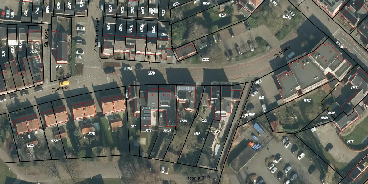 Sluisweg 5 is gelegen op kadastraal perceel DGN01I1726. Deze kadastrale aanduiding is uniek en wordt gebruikt door het Kadaster om eigendomsrechten en andere zakelijke rechten vast te leggen. Het perceel maakt onderdeel uit van de kadastrale gemeente Dongen.
