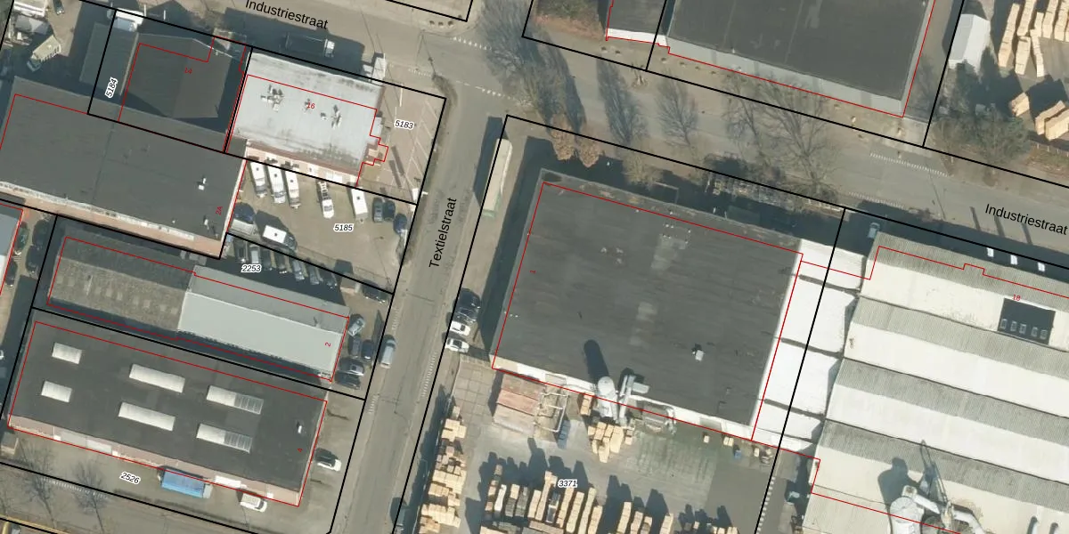 Het perceel waarop Textielstraat 1 staat heeft een oppervlakte van 5326 m². Dit is een zeer groot perceel. De perceeloppervlakte wordt geregistreerd door het Kadaster. Gedetailleerde informatie over de maten van dit perceel kunt u vinden in het rapport Kadastrale kaart met maatvoering van Textielstraat 1.
