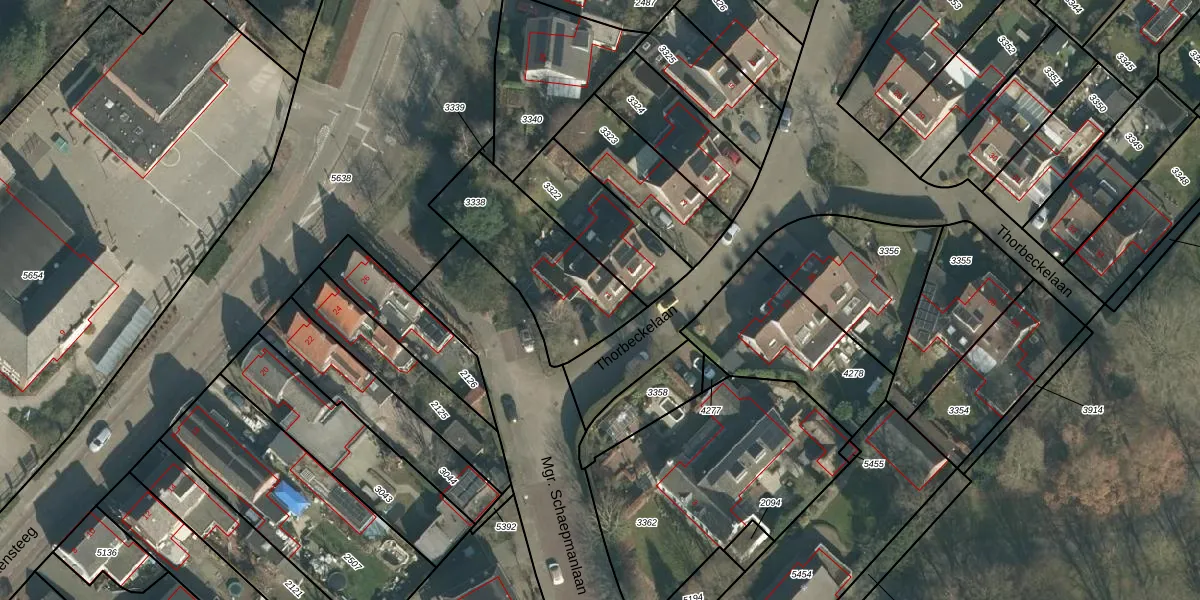 Thorbeckelaan 1 is gelegen op kadastraal perceel DGN01B3338. Deze kadastrale aanduiding is uniek en wordt gebruikt door het Kadaster om eigendomsrechten en andere zakelijke rechten vast te leggen. Het perceel maakt onderdeel uit van de kadastrale gemeente Dongen.