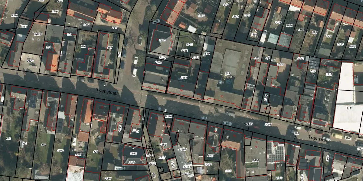 Tramstraat 54 is gelegen op kadastraal perceel DGN01I2755. Deze kadastrale aanduiding is uniek en wordt gebruikt door het Kadaster om eigendomsrechten en andere zakelijke rechten vast te leggen. Het perceel maakt onderdeel uit van de kadastrale gemeente Dongen.