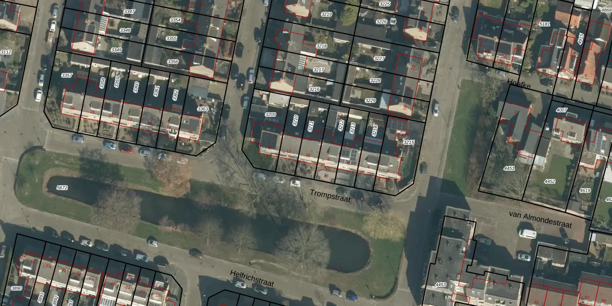 Het perceel waarop Trompstraat 10 staat heeft een oppervlakte van 163 m². Dit is een middelgroot perceel. De perceeloppervlakte wordt geregistreerd door het Kadaster. Gedetailleerde informatie over de maten van dit perceel kunt u vinden in het rapport Kadastrale kaart met maatvoering van Trompstraat 10.