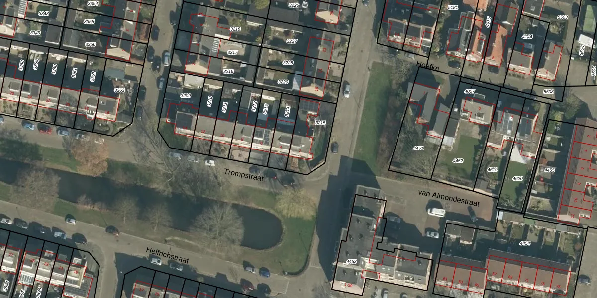 Het perceel waarop Trompstraat 2 staat heeft een oppervlakte van 296 m². Dit is een middelgroot perceel. De perceeloppervlakte wordt geregistreerd door het Kadaster. Gedetailleerde informatie over de maten van dit perceel kunt u vinden in het rapport Kadastrale kaart met maatvoering van Trompstraat 2.