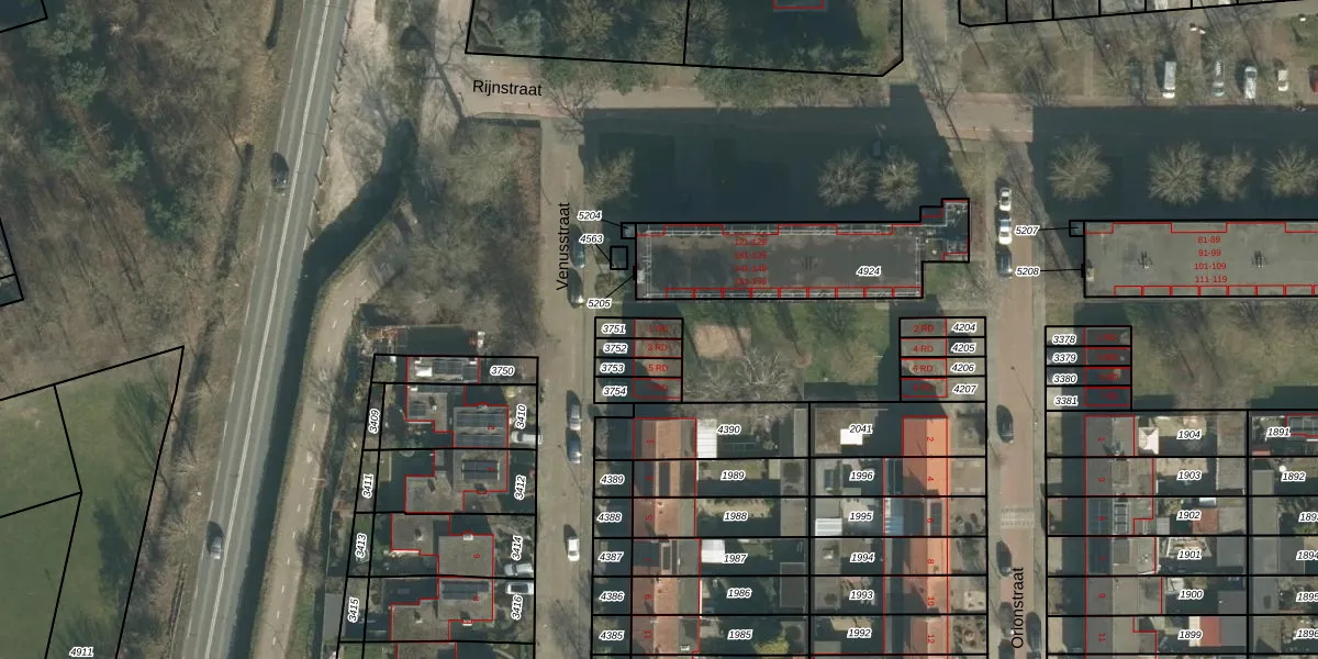 Venusstraat 1-RD is gelegen op kadastraal perceel DGN01A3751. Deze kadastrale aanduiding is uniek en wordt gebruikt door het Kadaster om eigendomsrechten en andere zakelijke rechten vast te leggen. Het perceel maakt onderdeel uit van de kadastrale gemeente Dongen.