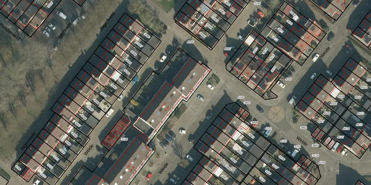 Het perceel waarop Weide 46 staat heeft een oppervlakte van 2235 m². Dit is een zeer groot perceel. De perceeloppervlakte wordt geregistreerd door het Kadaster. Gedetailleerde informatie over de maten van dit perceel kunt u vinden in het rapport Kadastrale kaart met maatvoering van Weide 46.