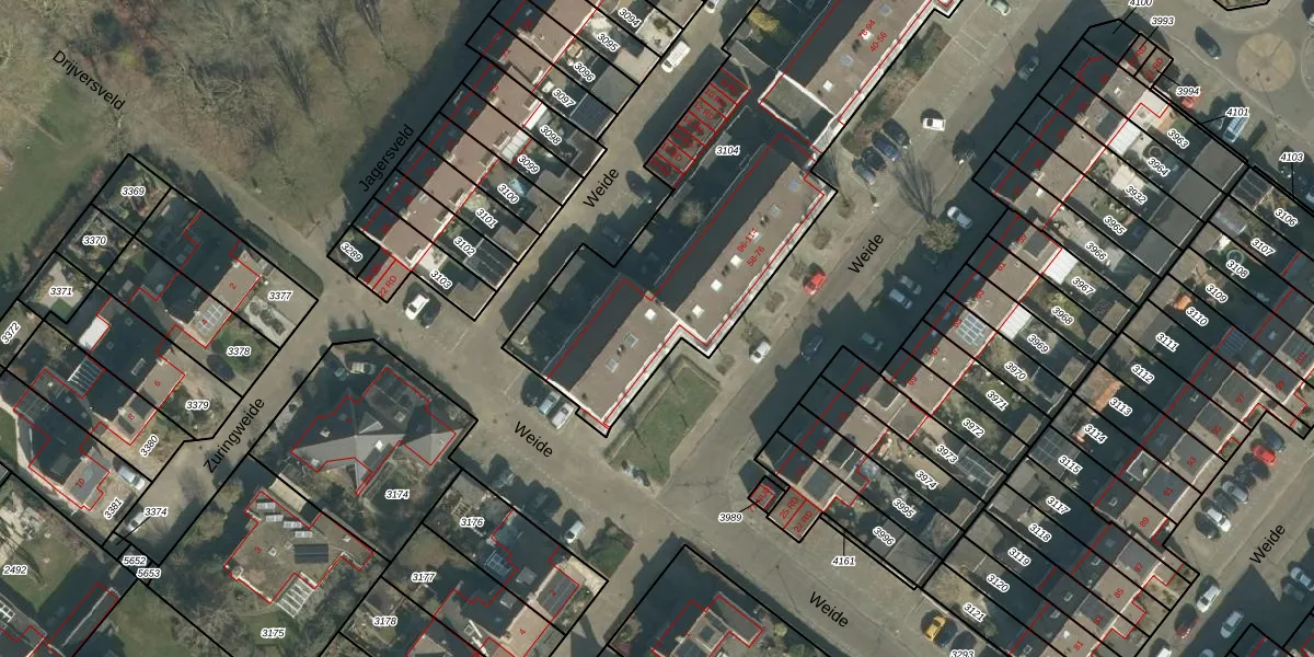 Het perceel waarop Weide 70 staat heeft een oppervlakte van 2235 m². Dit is een zeer groot perceel. De perceeloppervlakte wordt geregistreerd door het Kadaster. Gedetailleerde informatie over de maten van dit perceel kunt u vinden in het rapport Kadastrale kaart met maatvoering van Weide 70.