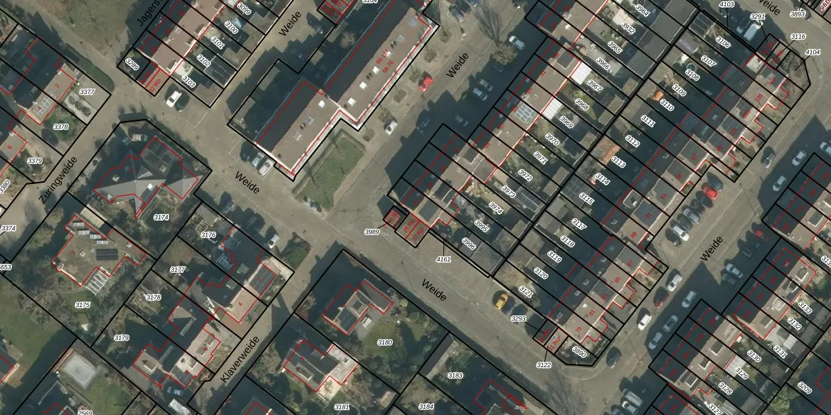 Het perceel waarop Weide 77 staat heeft een oppervlakte van 213 m². Dit is een middelgroot perceel. De perceeloppervlakte wordt geregistreerd door het Kadaster. Gedetailleerde informatie over de maten van dit perceel kunt u vinden in het rapport Kadastrale kaart met maatvoering van Weide 77.
