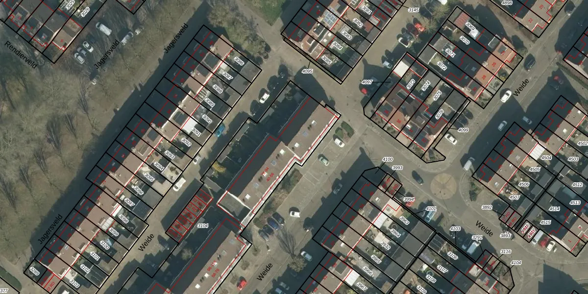 Het perceel waarop Weide 84 staat heeft een oppervlakte van 2235 m². Dit is een zeer groot perceel. De perceeloppervlakte wordt geregistreerd door het Kadaster. Gedetailleerde informatie over de maten van dit perceel kunt u vinden in het rapport Kadastrale kaart met maatvoering van Weide 84.