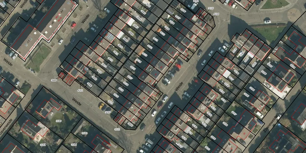 Het perceel waarop Weide 91 staat heeft een oppervlakte van 150 m². Dit is een middelgroot perceel. De perceeloppervlakte wordt geregistreerd door het Kadaster. Gedetailleerde informatie over de maten van dit perceel kunt u vinden in het rapport Kadastrale kaart met maatvoering van Weide 91.