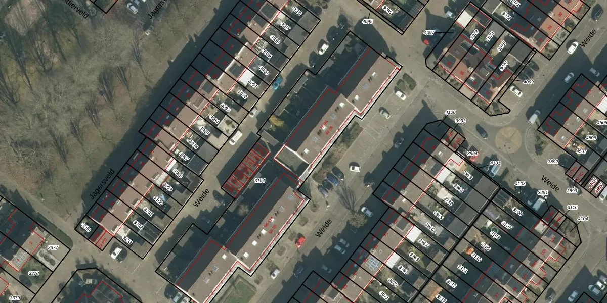 Het perceel waarop Weide 94 staat heeft een oppervlakte van 2235 m². Dit is een zeer groot perceel. De perceeloppervlakte wordt geregistreerd door het Kadaster. Gedetailleerde informatie over de maten van dit perceel kunt u vinden in het rapport Kadastrale kaart met maatvoering van Weide 94.