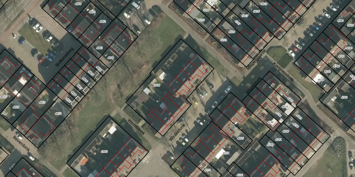 Wezeldonk 9 is gelegen op kadastraal perceel DGN01B2639. Deze kadastrale aanduiding is uniek en wordt gebruikt door het Kadaster om eigendomsrechten en andere zakelijke rechten vast te leggen. Het perceel maakt onderdeel uit van de kadastrale gemeente Dongen.