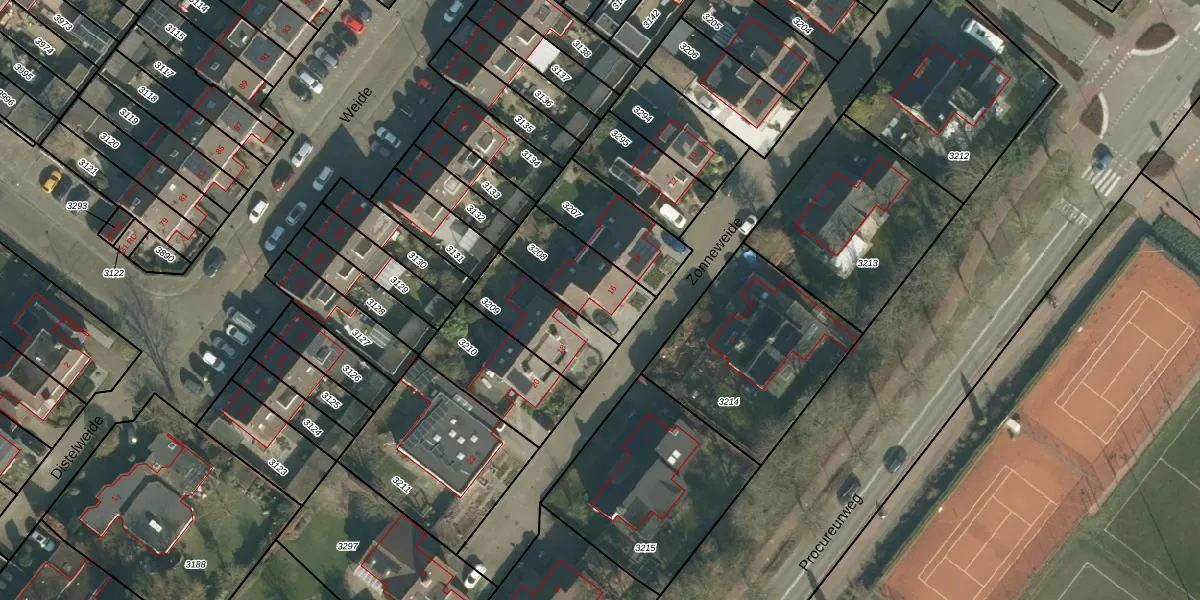 Gebruik de zoekbalk of klik op een perceel voor informatie over de adressen binnen dit perceel.