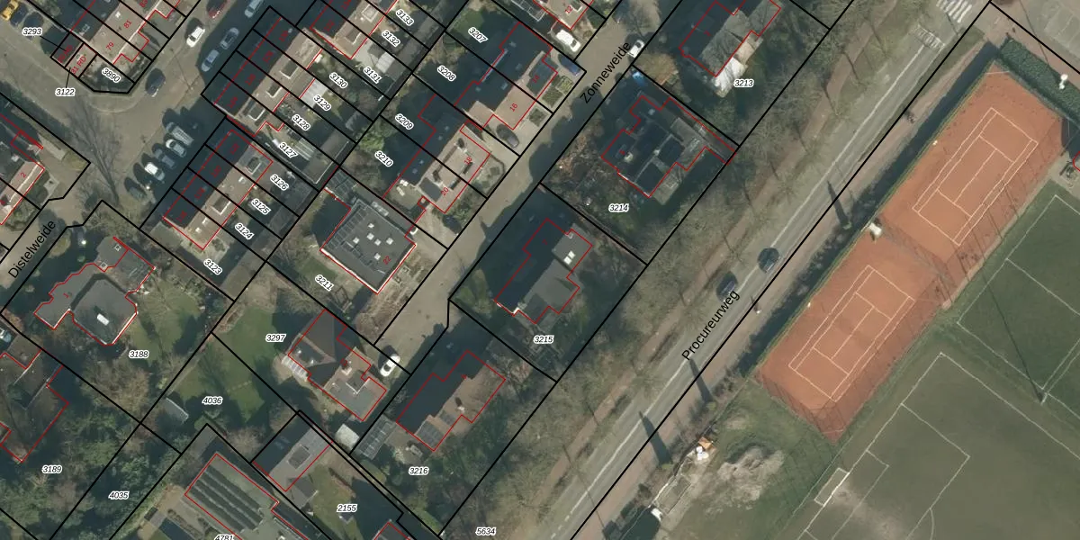 Het perceel waarop Zonneweide 7 staat heeft een oppervlakte van 694 m². Dit is een groot perceel. De perceeloppervlakte wordt geregistreerd door het Kadaster. Gedetailleerde informatie over de maten van dit perceel kunt u vinden in het rapport Kadastrale kaart met maatvoering van Zonneweide 7.