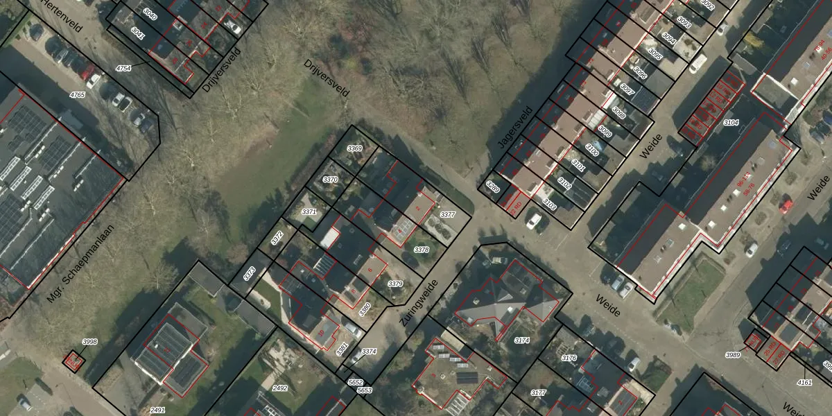 Gebruik de zoekbalk of klik op een perceel voor informatie over de adressen binnen dit perceel.
