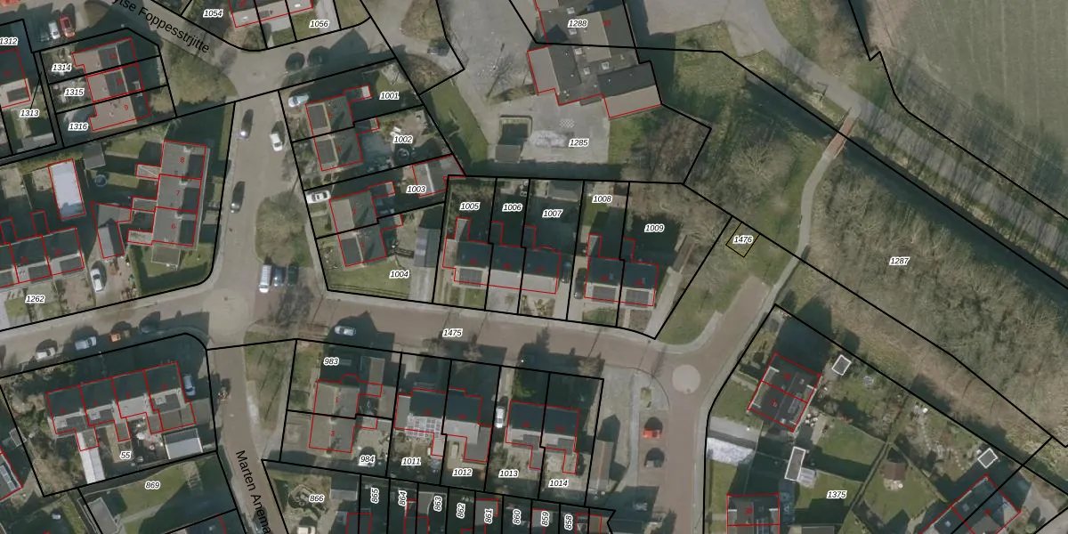 Gebruik de zoekbalk of klik op een perceel voor informatie over de adressen binnen dit perceel.