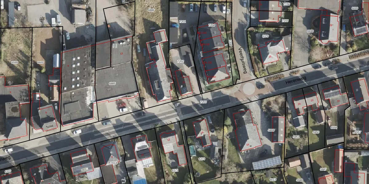 Gebruik de zoekbalk of klik op een perceel voor informatie over de adressen binnen dit perceel.