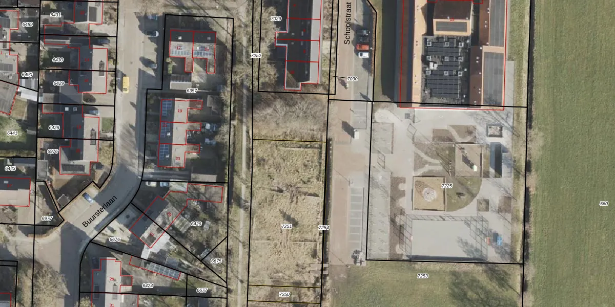 Het perceel waarop Schoolstraat 12 staat heeft een oppervlakte van 1181 m². Dit is een zeer groot perceel. De perceeloppervlakte wordt geregistreerd door het Kadaster. Gedetailleerde informatie over de maten van dit perceel kunt u vinden in het rapport Kadastrale kaart met maatvoering van Schoolstraat 12.