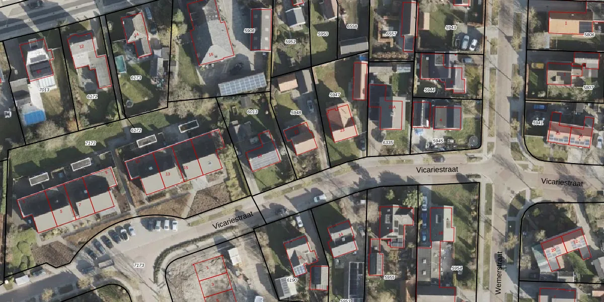 Het perceel waarop Vicariestraat 21 staat heeft een oppervlakte van 490 m². Dit is een groot perceel. De perceeloppervlakte wordt geregistreerd door het Kadaster. Gedetailleerde informatie over de maten van dit perceel kunt u vinden in het rapport Kadastrale kaart met maatvoering van Vicariestraat 21.