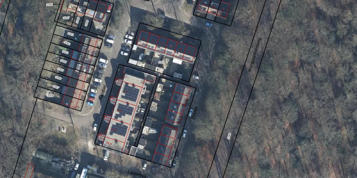 Het perceel waarop Braam 1 staat heeft een oppervlakte van 2050 m². Dit is een zeer groot perceel. De perceeloppervlakte wordt geregistreerd door het Kadaster. Gedetailleerde informatie over de maten van dit perceel kunt u vinden in het rapport Kadastrale kaart met maatvoering van Braam 1.