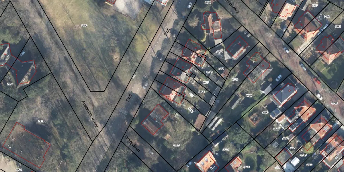 Het adres is gelegen op perceel 7771 in de sectie A en de kadastrale gemeente Doorn. De kadastrale aanduiding is aldus DOO00-A-7771. De gemiddelde perceelgrootte in Doorn is 4246,86 m². Dit perceel is kleiner: de perceeloppervlakte bedraagt 238 m². Het kleinste perceel in de kadastrale gemeente is 0 m² groot. De grootste perceeloppervlakte is 50,0 ha. Dit is het enige adres dat aanwezig is op het perceel. De laatste wijziging in het de Basisregistratie Kadaster (BRK) was op 20-10-2009.