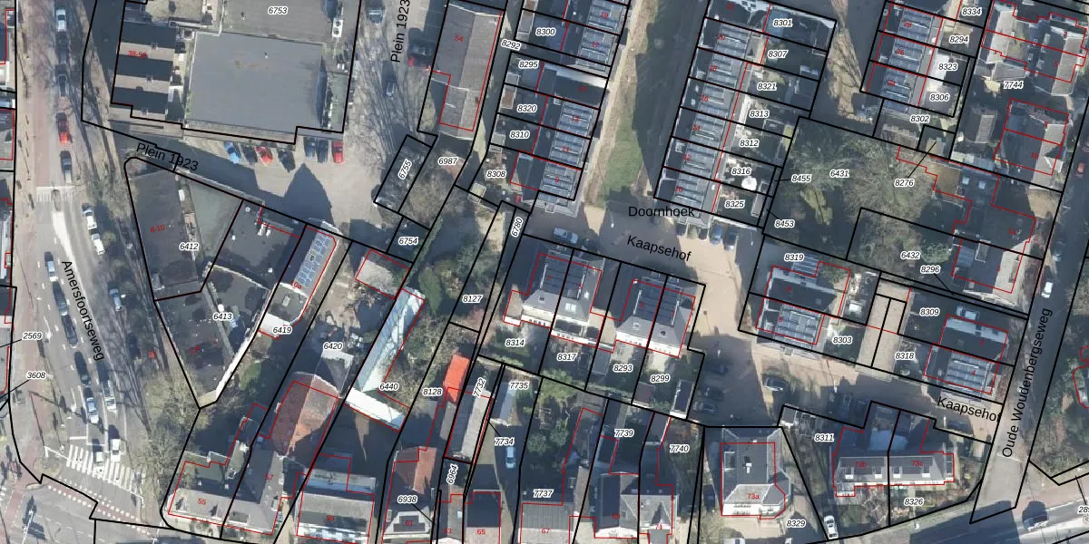Kaapsehof 7 is gelegen op kadastraal perceel DOO00A8314. Deze kadastrale aanduiding is uniek en wordt gebruikt door het Kadaster om eigendomsrechten en andere zakelijke rechten vast te leggen. Het perceel maakt onderdeel uit van de kadastrale gemeente Doorn.