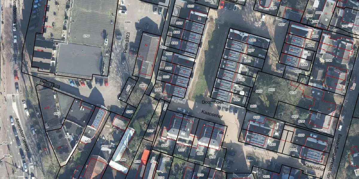 Kaapsehof 9 is gelegen op kadastraal perceel DOO00A8308. Deze kadastrale aanduiding is uniek en wordt gebruikt door het Kadaster om eigendomsrechten en andere zakelijke rechten vast te leggen. Het perceel maakt onderdeel uit van de kadastrale gemeente Doorn.