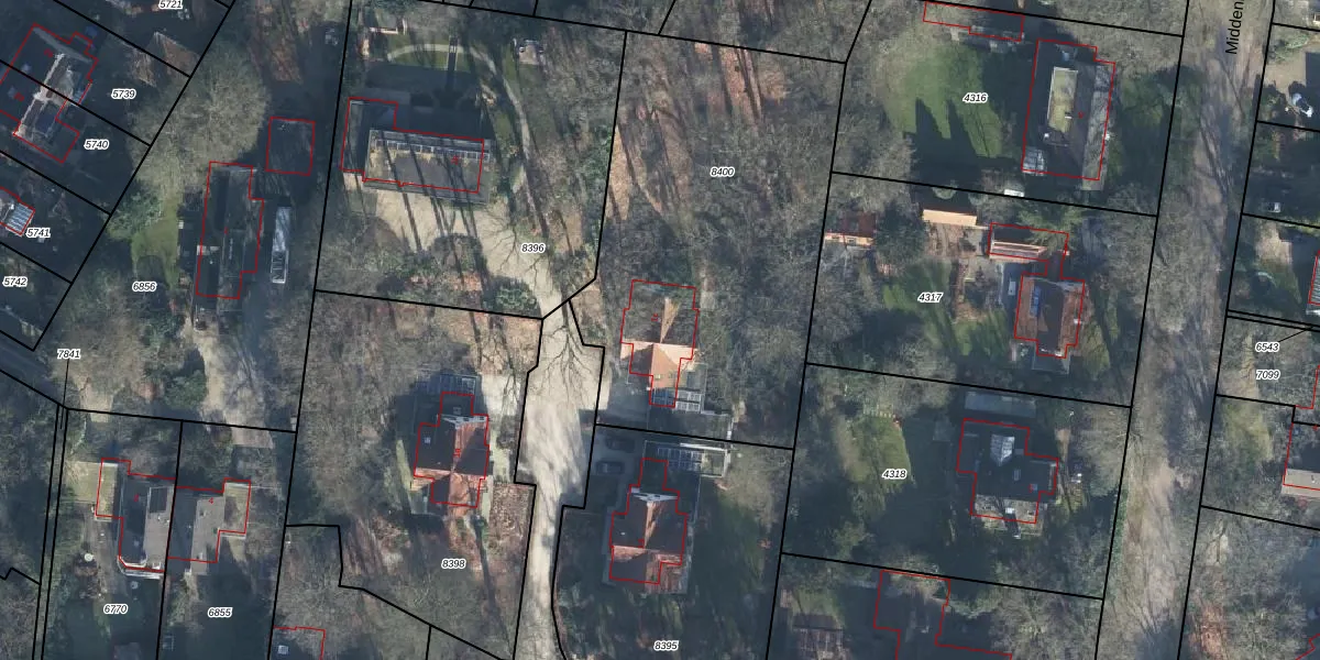 Middenlaan 1-c is gelegen op kadastraal perceel DOO00A8400. Deze kadastrale aanduiding is uniek en wordt gebruikt door het Kadaster om eigendomsrechten en andere zakelijke rechten vast te leggen. Het perceel maakt onderdeel uit van de kadastrale gemeente Doorn.