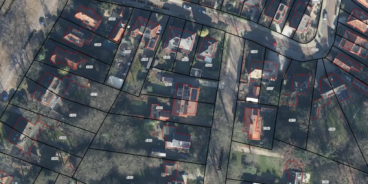 Middenlaan 21 is gelegen op kadastraal perceel DOO00A5002. Deze kadastrale aanduiding is uniek en wordt gebruikt door het Kadaster om eigendomsrechten en andere zakelijke rechten vast te leggen. Het perceel maakt onderdeel uit van de kadastrale gemeente Doorn.