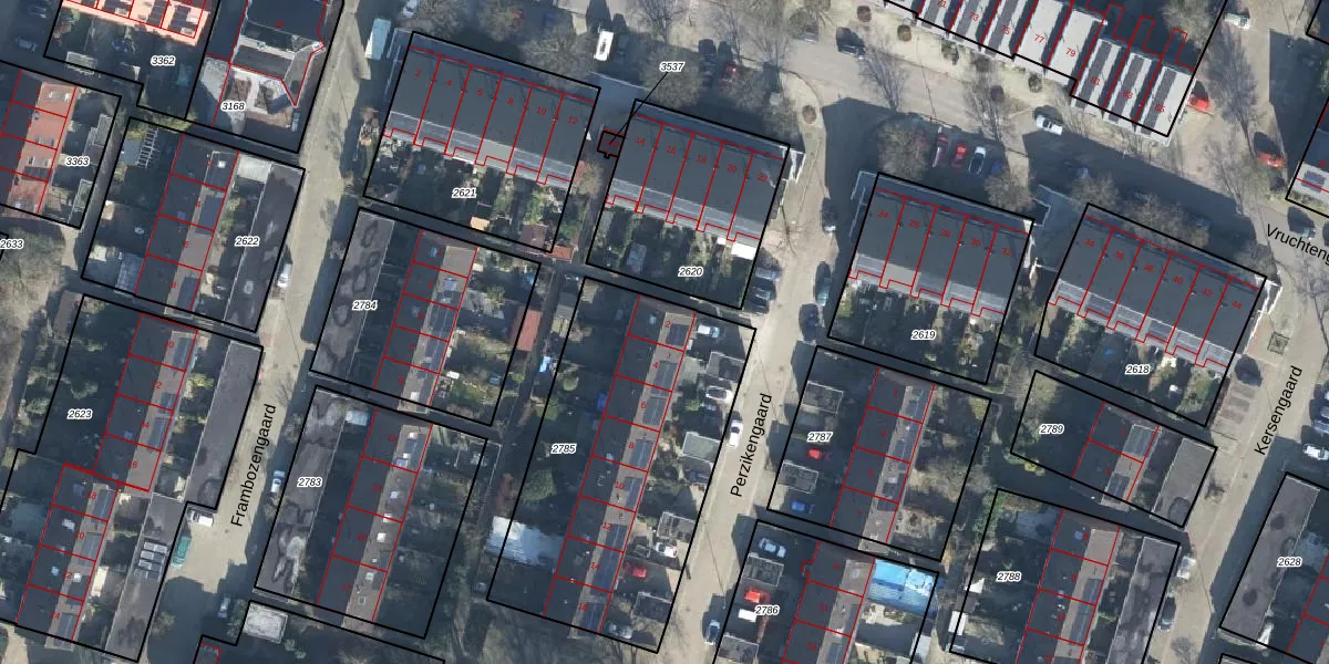 Het perceel waarop Perzikengaard 2 staat heeft een oppervlakte van 1395 m². Dit is een zeer groot perceel. De perceeloppervlakte wordt geregistreerd door het Kadaster. Gedetailleerde informatie over de maten van dit perceel kunt u vinden in het rapport Kadastrale kaart met maatvoering van Perzikengaard 2.