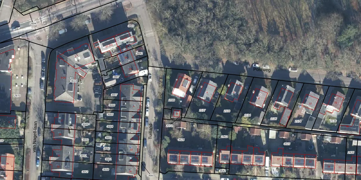 Het perceel waarop Postweg 2 staat heeft een oppervlakte van 383 m². Dit is een groot perceel. De perceeloppervlakte wordt geregistreerd door het Kadaster. Gedetailleerde informatie over de maten van dit perceel kunt u vinden in het rapport Kadastrale kaart met maatvoering van Postweg 2.