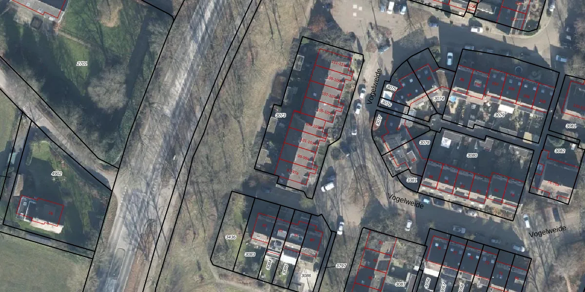 Het perceel waarop Vogelweide 99 staat heeft een oppervlakte van 1140 m². Dit is een zeer groot perceel. De perceeloppervlakte wordt geregistreerd door het Kadaster. Gedetailleerde informatie over de maten van dit perceel kunt u vinden in het rapport Kadastrale kaart met maatvoering van Vogelweide 99.